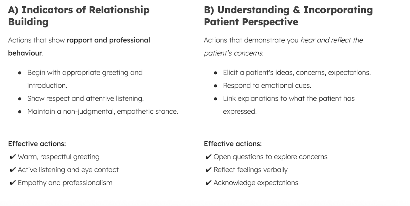 That includes how you respond to patient cues, how you sound when explaining or reassuring, and how consistently your communication style fits the situation.